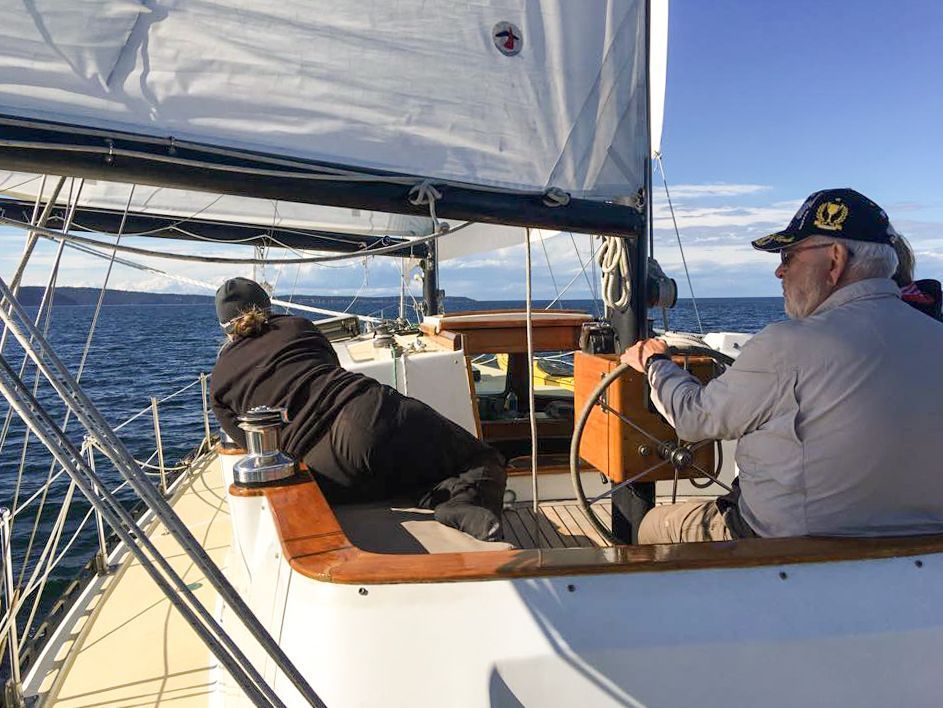 Nawalak (Kwakwaka'wakw word meaning spirit of nature) is a 55' Pilothouse Ketch Sailboat. Our heated and dry pilothouse means if we encounter a rain shower (it is the PNW!) guests and the captain can sit cozily warm and dry while having panoramic views. The interior is created almost entirely of tea
