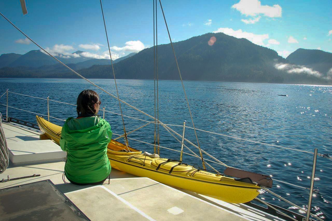 Sail with us to where civilization gradually fades astern. Northwest is where we're headed, underneath a golden sky as we begin to get a taste of the wilder side of the North American coast. Natural Hot Springs, 10,000 yr old protected First Nation villages, ancient totem poles, pods of leaping dolphins, Orcas, Humpbacks, Bears, Rain Wolves. These are just some of the highlights on our farthest north tour. This is a true adventure, but with all the creature comforts and safety we've developed from over 20 years of experience with this route.